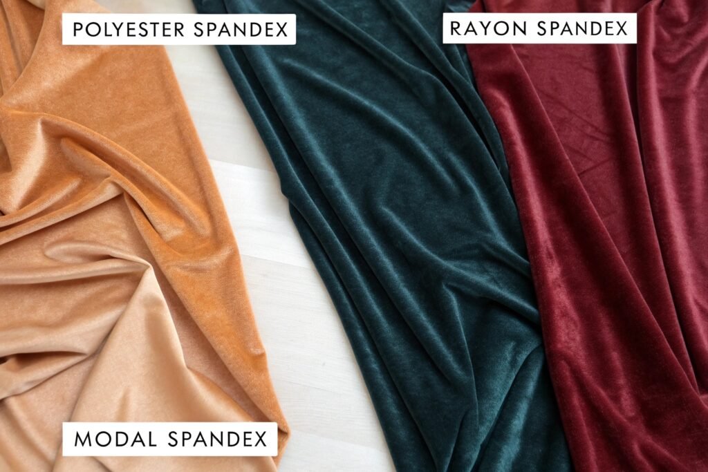 Polyester-spandex velvet is best for high durability and colorfastness. Rayon-spandex offers a silkier drape, while modal blends provide eco-friendlier softness.