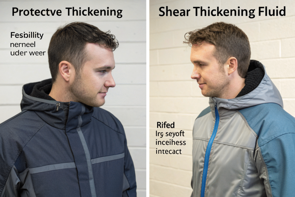 Unlike traditional polyurethane coatings that add permanent stiffness (learn more here), shear-thickening fluids remain flexible until activated. They provide protection without reducing comfort, a feature increasingly demanded in sports equipment manufacturing (see details).