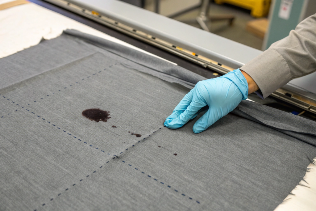 Finishing gives fabric its final hand feel and performance, but errors here can ruin everything. Contaminations are foreign elements that shouldn't be there—they’re often the easiest for a final QC to spot but can be the most embarrassing if missed. Think of a hair embedded in a luxury wool coating or an oil stain on pristine white shirting.