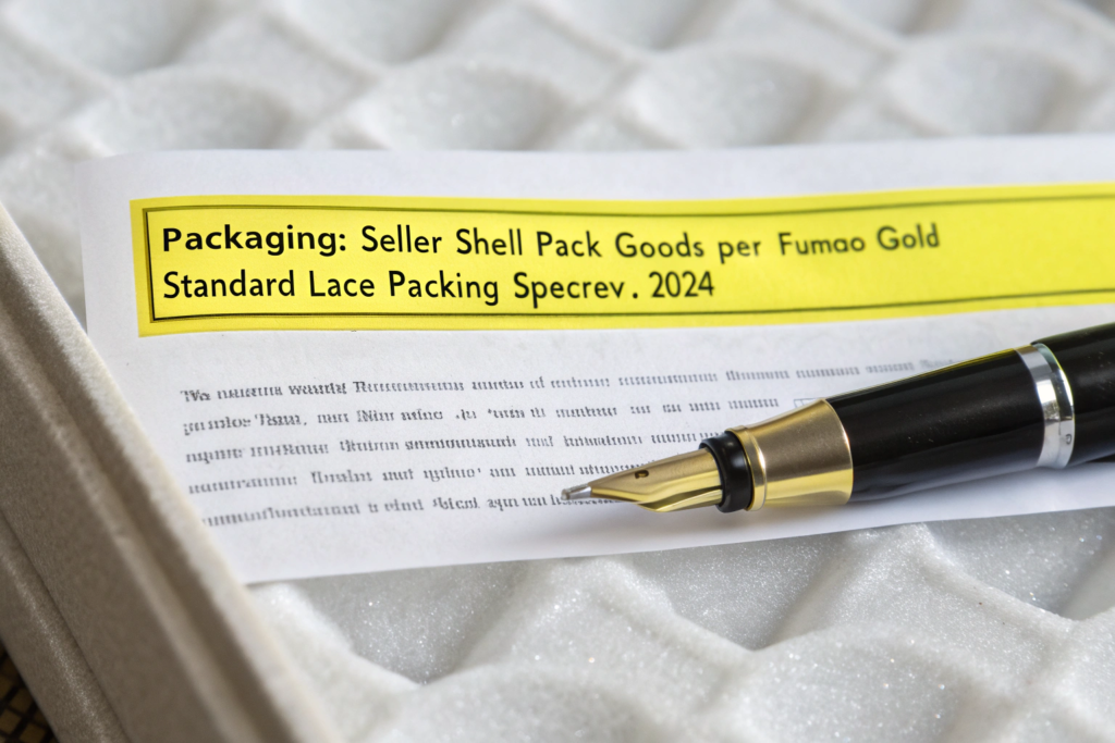 • Good: "Packing must comply with the attached ‘Lace Fabric Packaging Specification Sheet, Version 2.0’, including mandatory use of 3” core tubes, vacuum-sealing with 3 units of silica gel per roll, and double-wall cartons. Non-compliance will result in refusal of shipment at supplier’s cost."