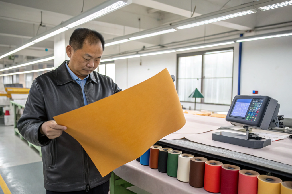 One more thing: test on your actual production equipment. We had a client whose cutting machine used ultrasonic cutting. Standard vegan leather melted at the edges. We had to develop a special formulation with higher heat resistance. You won't catch this in a lab test—you need to run it through your actual process.