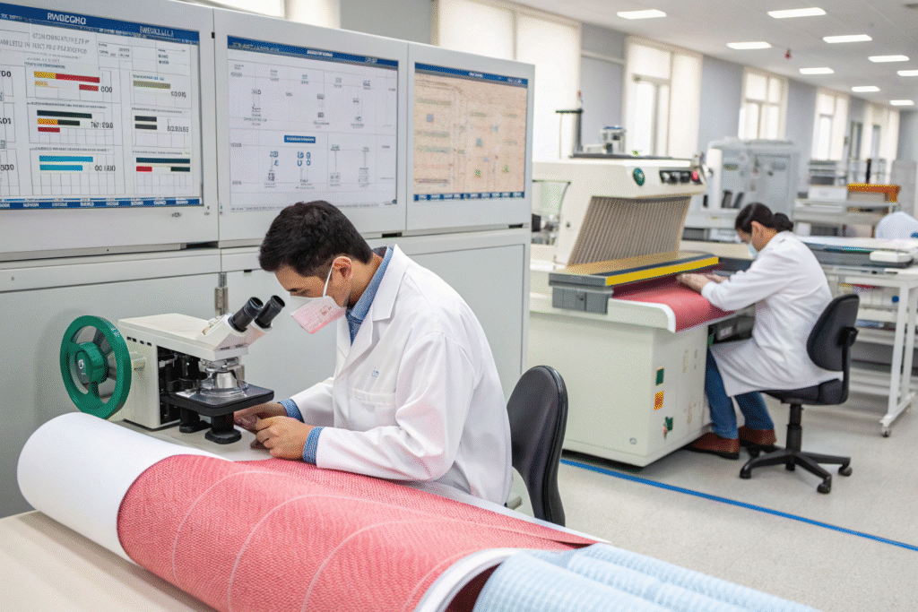 2. In-House Bulk Fabric Testing: We test bulk fabric rolls in our lab before cutting.