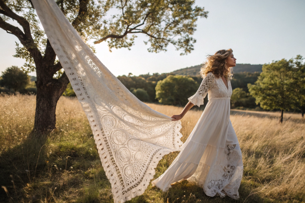 Crochet lace is a handcrafted or machine-made fabric created by interlooping yarn with a crochet hook, forming intricate, openwork patterns. Its role in bohemian and artisanal fashion is foundational: it is the ultimate symbol of crafted individuality, romantic nostalgia, and sustainable, slow fashion values. Unlike uniform machine embroidery, crochet’s very structure embodies a personal touch, making each garment feel one-of-a-kind. For brands and designers, it bridges the gap between heritage craft and contemporary design, offering a tangible connection to human skill that modern shoppers are willing to pay a premium for.
