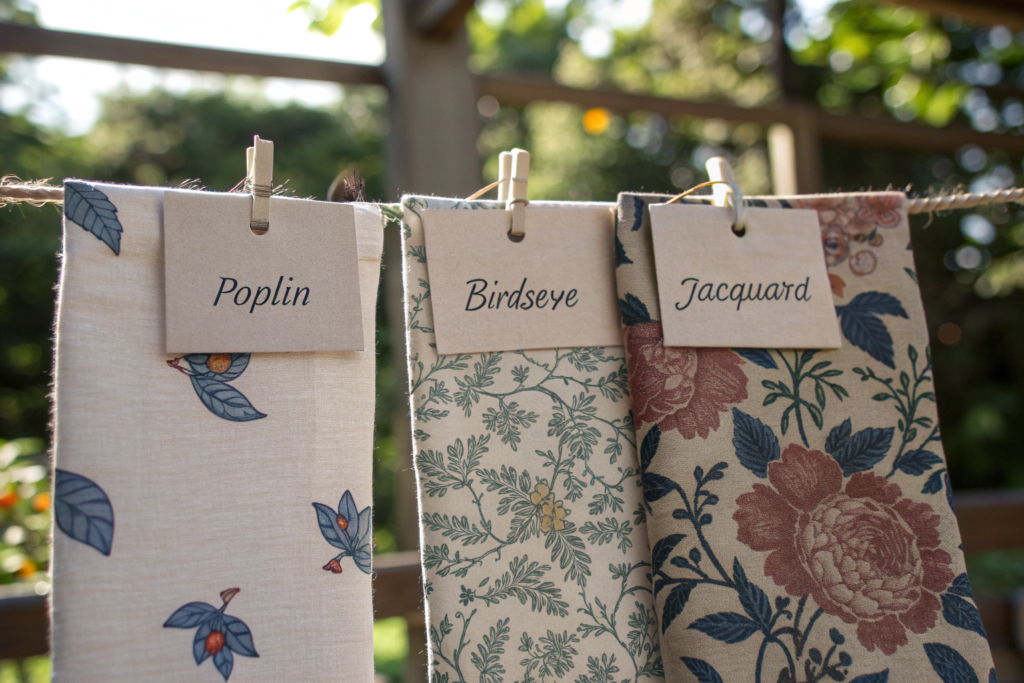 I also check for sanforization on cotton dobby fabrics. This pre-shrinking process stabilizes the fabric. Without it, your pattern can distort after washing.