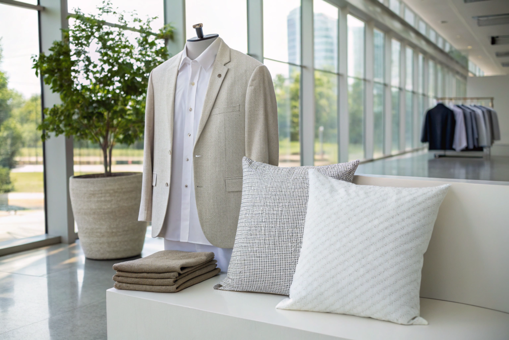 - Blazers and jackets: Heavier dobby weaves give structure with visual interest
