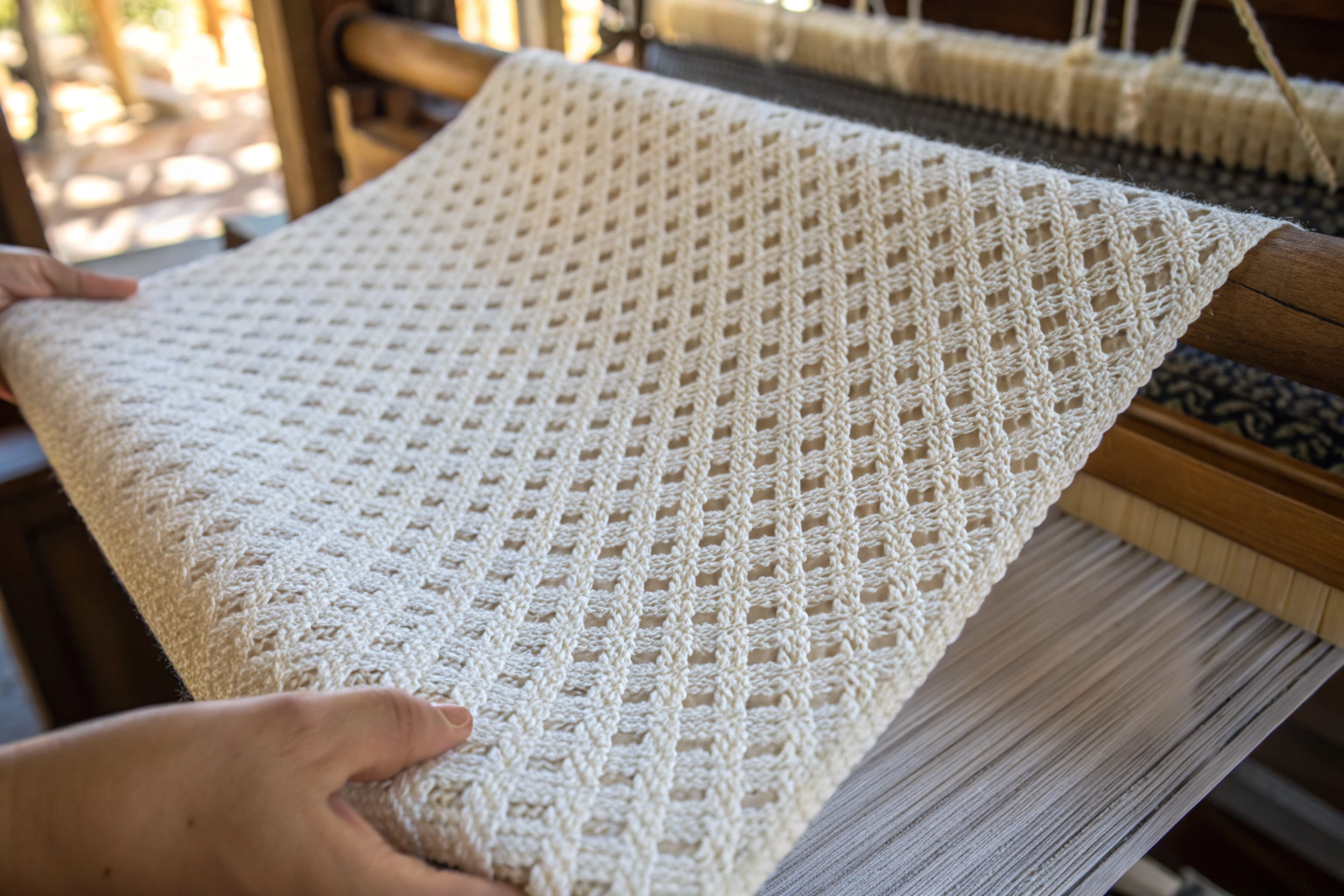 To understand dobby, you need to understand how a loom works. In a plain weave loom, there are two harnesses. One lifts the odd warp threads, the other lifts the even threads. The shuttle passes through, and you get that simple over-under structure. It’s reliable, but it’s limited.
