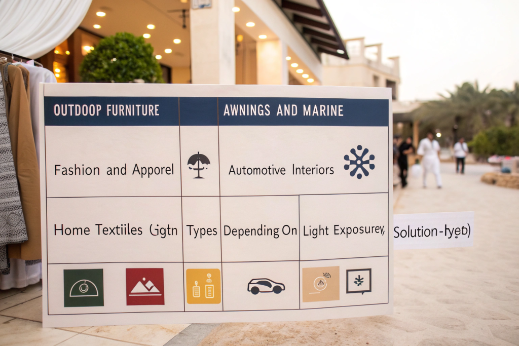 Contract upholstery: Public spaces, hotels, restaurants—high use, frequent cleaning, need for long life. Solution-dyed justifies higher cost through reduced replacement.