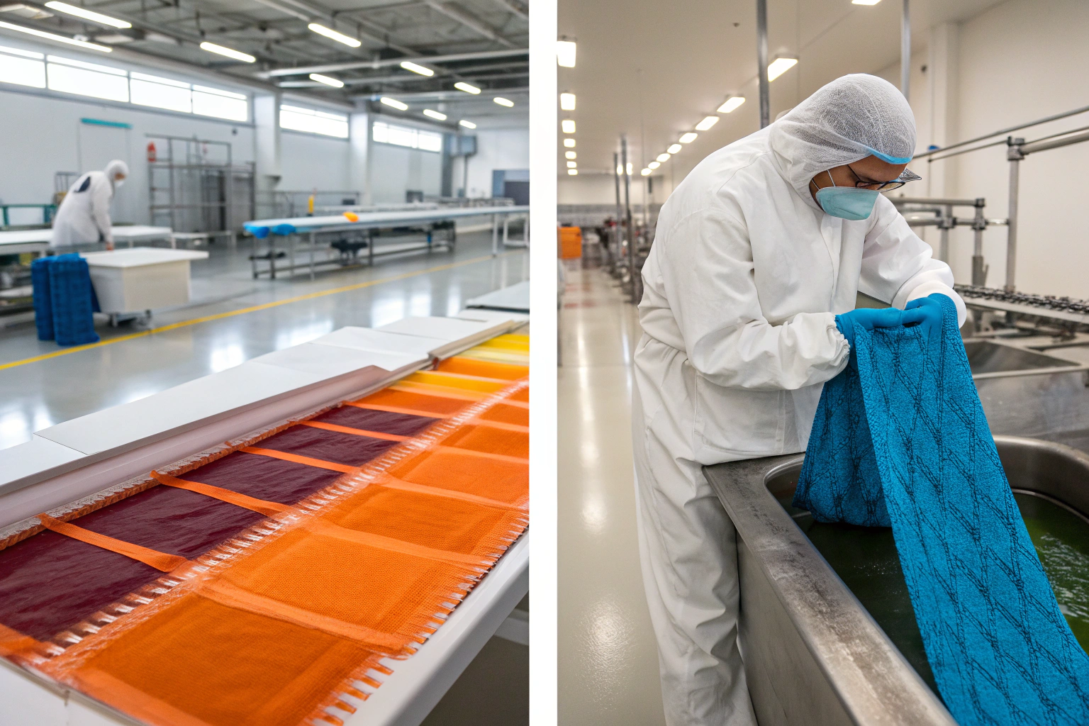 Solution-dyed: Pigments are physically trapped in the fiber matrix. Washing removes surface dirt but can't remove color because color isn't on the surface. Even after 100+ washes, color remains virtually unchanged.