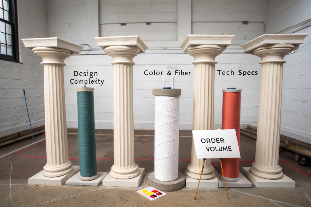 The four most impactful factors are: 1. Design Originality, 2. Color Complexity, 3. Technical Specifications, and 4. Order Volume. A completely original design requires creating a digital technical file (CAD), which can take a week alone. More colors in the pattern mean more yarn sourcing and more complex dyeing/thread setup. Technical specs like adding elastane for stretch, achieving a specific weight, or getting a special eco-certification add sequential steps. Finally, while order volume has less impact on the per-day production rate, it determines the total run time on the looms and finishing machines.