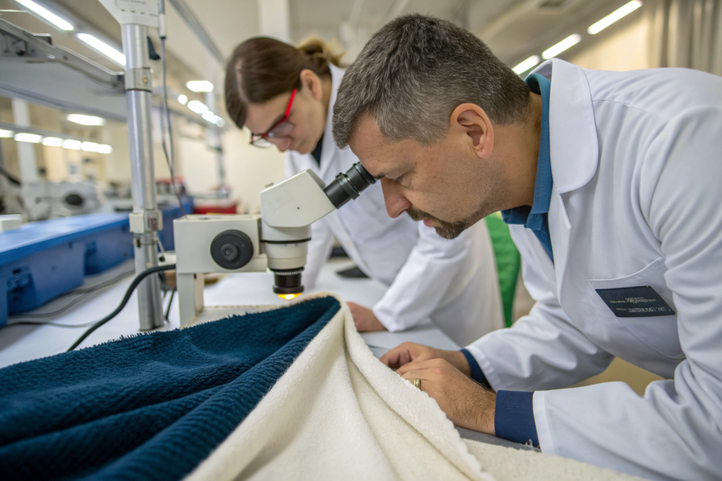 Hand feel assessment: Softness should be consistent across the sample. Localized stiff areas indicate problems.