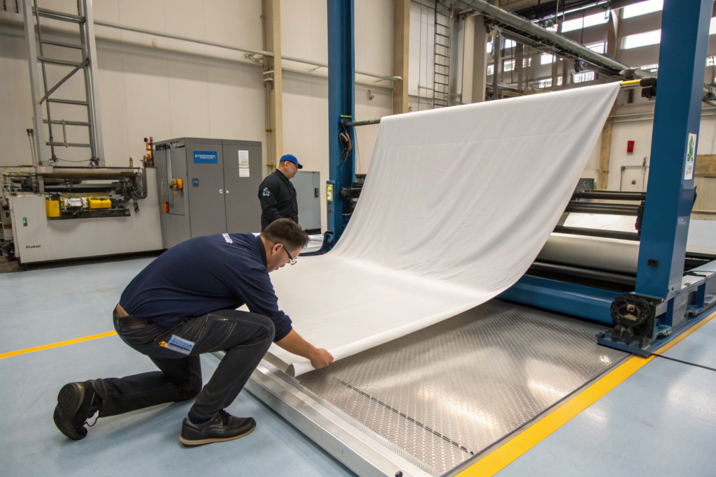 The application process for PVC is a full-on industrial operation. It’s much thicker and heavier than PU. We use a spreading machine that lays down a thick layer of plastisol. For a client in Texas who makes inflatable boat covers, we had to ensure absolute consistency in the coating thickness to prevent weak spots.