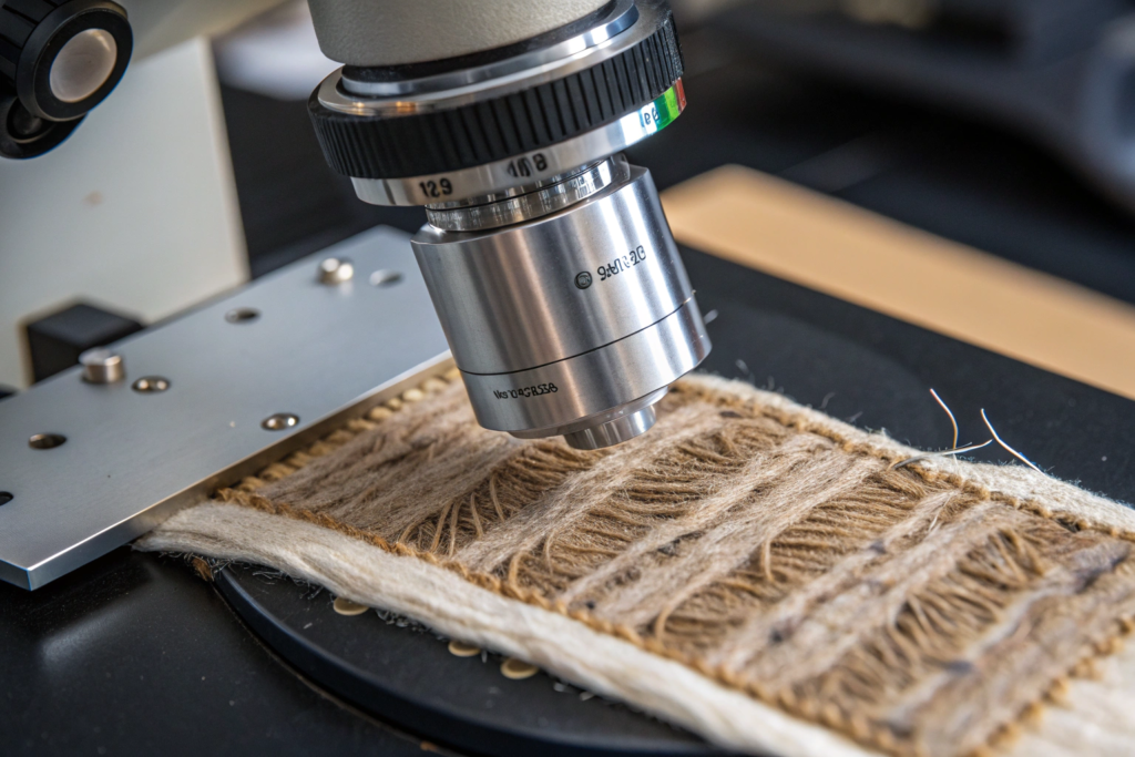 Microscopy can identify the fiber type. Yak down has a different scale pattern than cashmere. Wild silk has a different cross-section than cultivated silk. These tests can confirm that the fiber is what the supplier claims.