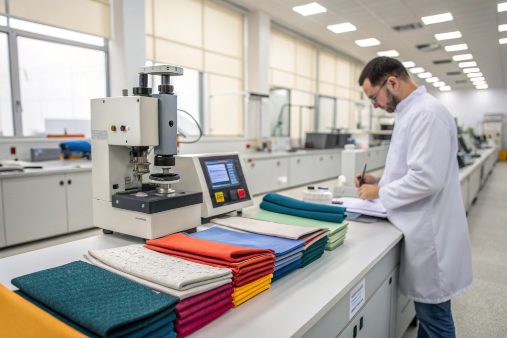We test every batch of fabric for the specifications that matter to our clients. Composition verification ensures the fiber content matches what we promised. Shrinkage testing ensures the fabric will perform in washing. Colorfastness testing confirms that colors won't bleed or fade. Tensile strength testing verifies durability.