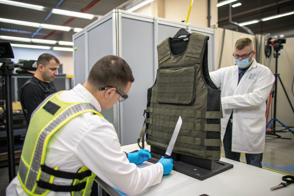 The HOSDB standards, such as KR1 or KR2, simulate real knife threats with controlled strike forces. These protocols are widely used in Europe and are compatible with U.S. NIJ ratings. More details are on Gov.UK.