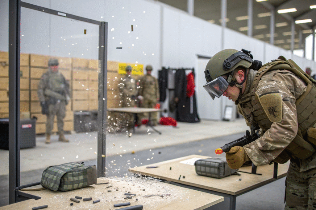 Independent labs like EUROLAB fire steel projectiles at protective products to simulate battlefield threats. The standard is strict: no penetration, no cracks, no failures.