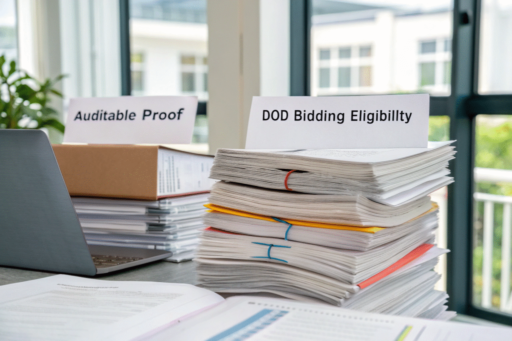 Verification is conducted through certificates of origin, vendor audits, and compliance documentation issued by approved suppliers. Auditable proof is crucial for DoD bidding eligibility.