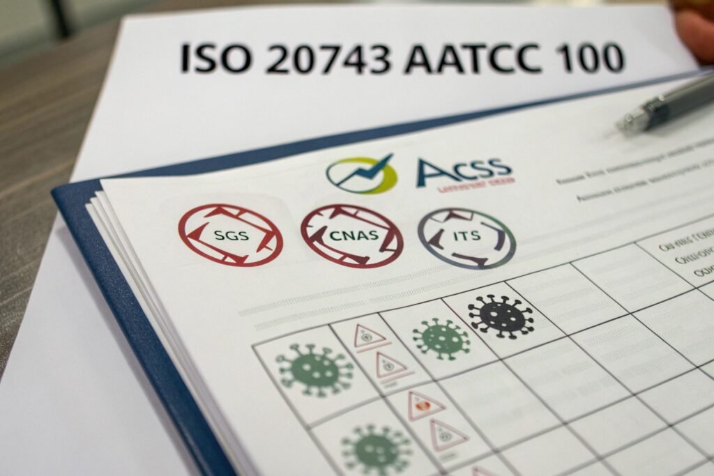 - AATCC 100 Report (or ISO 20743): Shows bacteria reduction rate (e.g., 99.9% vs. staph or E. coli).