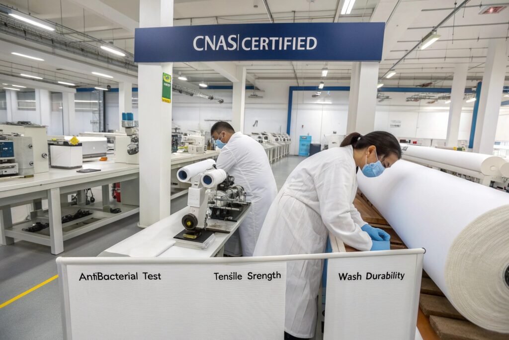 To manufacture hospital-grade uniforms, suppliers must offer more than "antibacterial" labels. Top suppliers develop textiles in certified labs, document performance data like kill-rate percentages, and offer long-term consistency. For example, our in-house CNAS lab allows us to confirm colorfastness, shrinkage, and bacterial resistance using international standards like AATCC 100. Without this, buyers are left guessing.