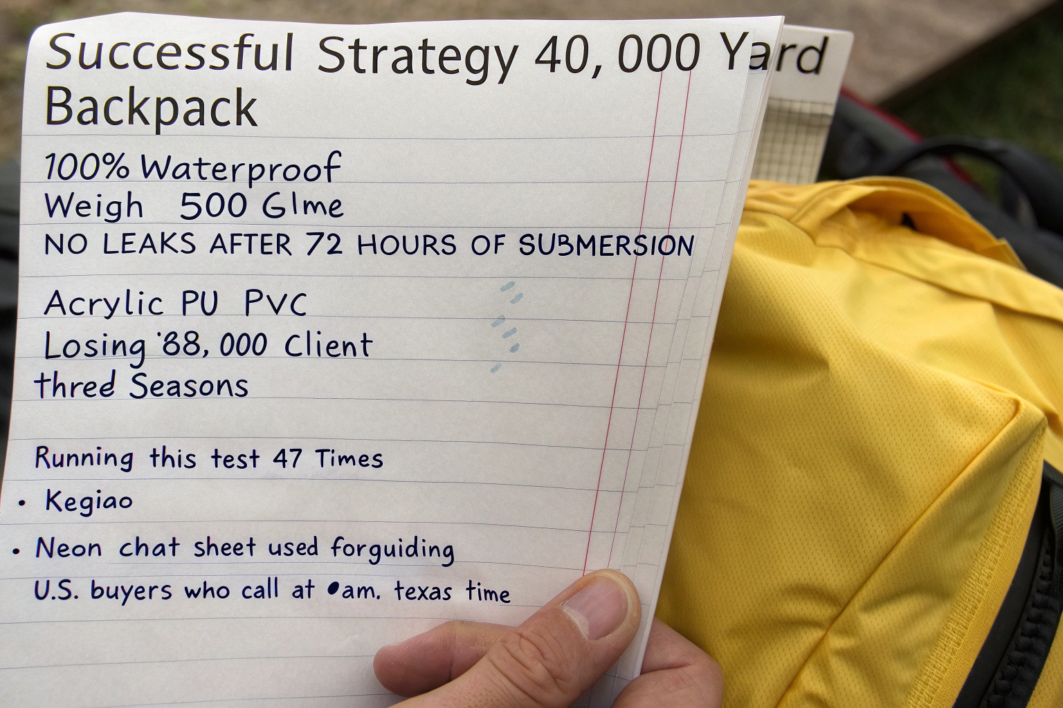 Spec: 100 % waterproof · ≤500 g/m² · zero leaks after 72 h submersion.