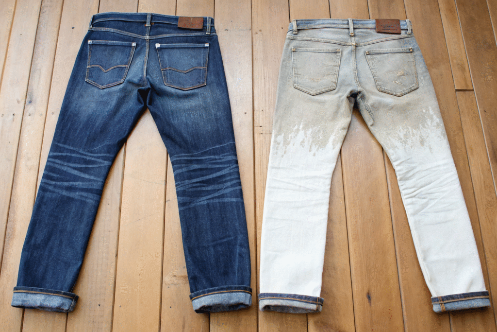 - Rope dyeing with natural indigo: Creates superior fading characteristics