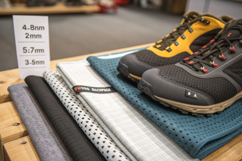 Fabric thickness directly influences the ventilation potential, but the relationship isn't linear. Our testing shows the optimal range for backpack and footwear applications is 4-8mm. Thinner fabrics (2-4mm) compress too easily under load, collapsing the air channels, while thicker fabrics (8-12mm) add unnecessary weight and bulk without proportional ventilation benefits. The sweet spot for backpack back panels is 5-7mm, while footwear typically uses 3-5mm to maintain fit within shoe lasts. We recently developed a 6mm fabric for a Swiss backpack brand that maintained 80% of its air volume under 15kg load—significantly better than the 50-60% retention of standard 8mm fabrics.