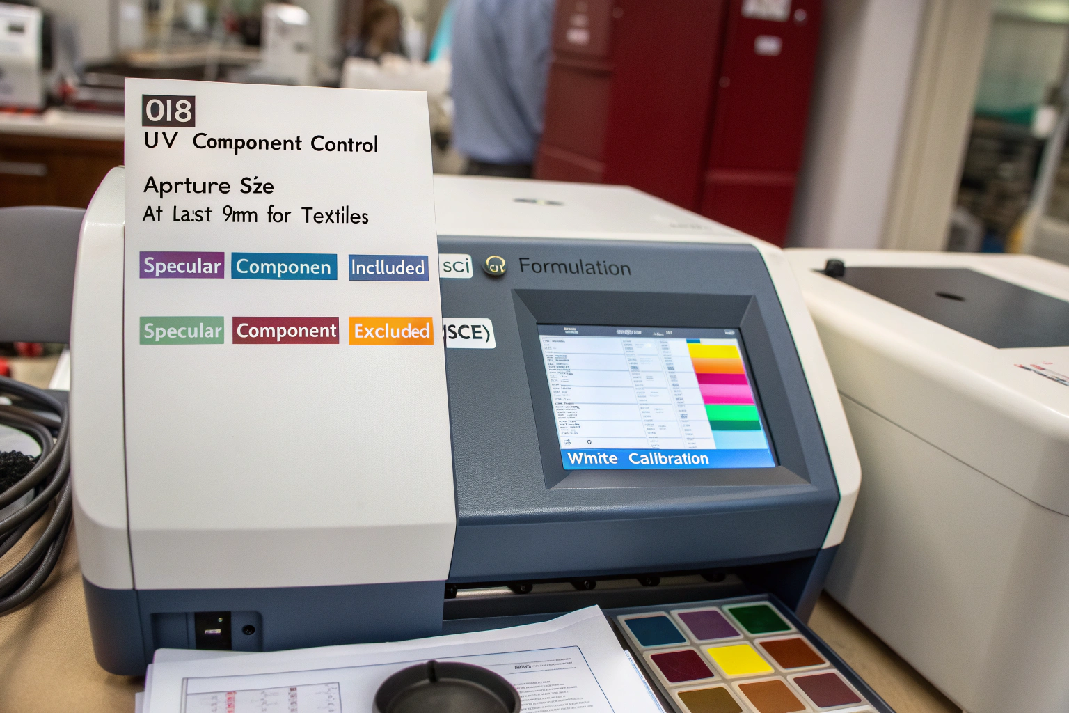 The most critical spectrophotometer settings for fabric color QC are the measurement geometry (d/8° with UV component control), aperture size (at least 9mm for textiles), specular component included (SCI) for formulation, specular component excluded (SCE) for visual matching, and the proper white calibration before each session. These five settings form the foundation of reliable color measurement, while secondary settings like filter selection and measurement timing ensure consistency across operators and facilities.