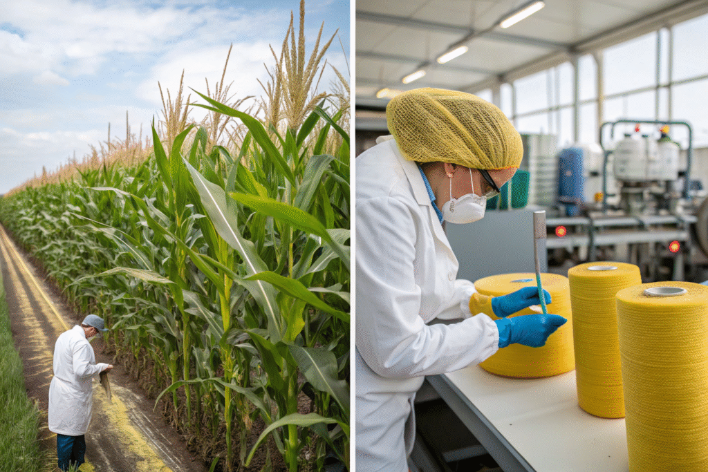 PTT (Polytrimethylene Terephthalate) is a partially bio-based polyester. Unlike conventional polyester (PET), PTT uses plant-derived glucose as 37% of its feedstock, sourced from renewable corn sugar.