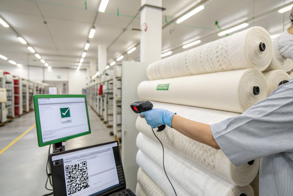 Our system is built around Batch-Level QR Code Tracking. When greige fabric enters our dye house, it gets a unique Fumao Batch ID. Every time that batch moves through a process—scouring, dyeing, finishing, stentering—the operator scans the batch ticket. The system logs the machine number, the start time, the water temperature, and the Lot Numbers of the Chemical Inputs. Which drum of blue dye? Which tote of silicone softener? It's all logged. If there is ever a question about a specific roll—say, a customer complains about a rash or a custom inspector asks for proof of compliance—we can scan the QR code on the roll label and pull up the "Digital Passport" for that exact fabric.