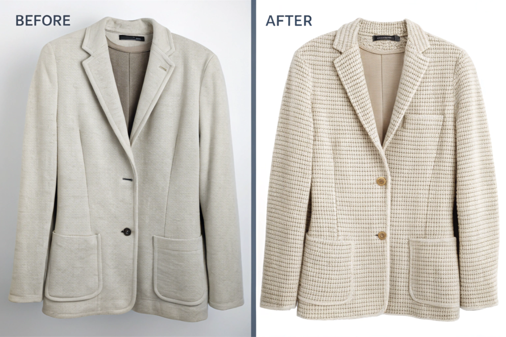 Every few years, someone tries to make a "knit blazer" work. The idea is appealing—blazer style with knit comfort. But the results consistently fall short, and understanding why clarifies what wovens do best.